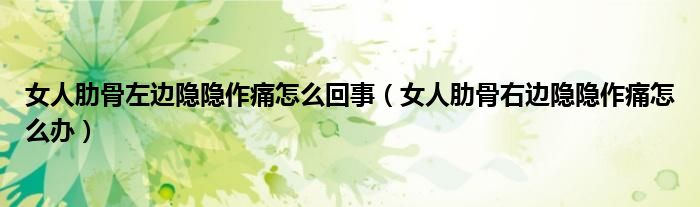 大家好,linda来为大家解答以上的问题。女人肋骨左边隐隐作痛怎么回事,女人肋骨右边隐隐作痛怎么办很多人还不知道,现在让我们一起来看看吧!