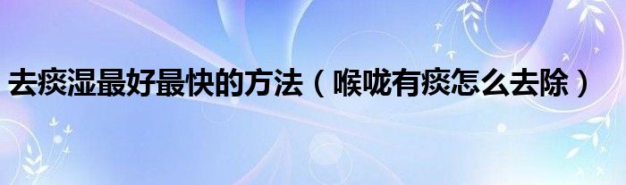 大家好,linda来为大家解答以上的问题。去痰湿最好最快的方法,喉咙有痰怎么去除很多人还不知道,现在让我们一起来看看吧!
