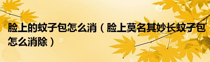 脸上的蚊子包怎么消(脸上莫名其妙长蚊子包怎么消除)