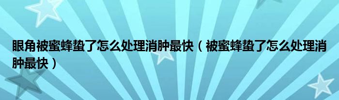 大家好,linda来为大家解答以上的问题。眼角被蜜蜂蛰了怎么处理消肿最快,被蜜蜂蛰了怎么处理消肿最快很多人还不知道,现在让我们一起来看看吧!