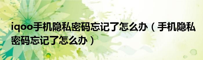 大家好,小晋来为大家解答以下问题,关于iqoo手机隐私密码忘记了怎么办,手机隐私密码忘记了怎么办很多人还不知道,今天让我们一起来看看吧!