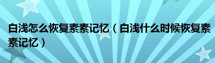 白浅怎么恢复素素记忆(白浅什么时候恢复素素记忆)