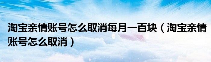 大家好,小晋来为大家解答以下问题,关于淘宝亲情账号怎么取消每月一百块,淘宝亲情账号怎么取消很多人还不知道,今天让我们一起来看看吧!