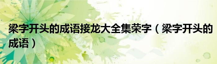 大家好,小晋来为大家解答以下问题,关于梁字开头的成语接龙大全集荣字,梁字开头的成语很多人还不知道,今天让我们一起来看看吧!
