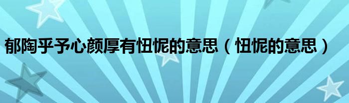 大家好,小晋来为大家解答以下问题,关于郁陶乎予心颜厚有忸怩的意思,忸怩的意思很多人还不知道,今天让我们一起来看看吧!