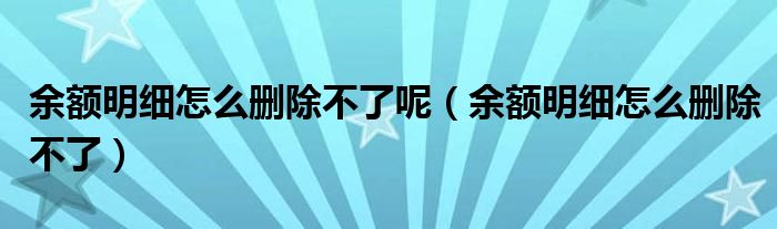 大家好,小晋来为大家解答以下问题,关于余额明细怎么删除不了呢,余额明细怎么删除不了很多人还不知道,今天让我们一起来看看吧!