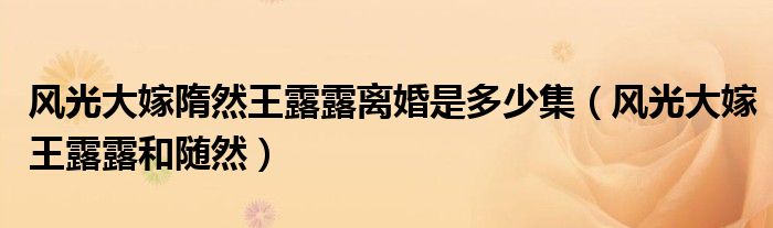 风光大嫁隋然王露露离婚是多少集(风光大嫁王露露和随然)