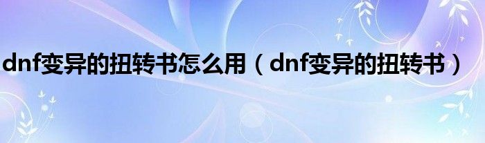 大家好,小晋来为大家解答以下问题,关于dnf变异的扭转书怎么用,dnf变异的扭转书很多人还不知道,今天让我们一起来看看吧!