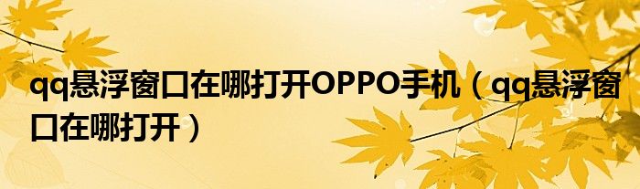 大家好,小晋来为大家解答以下问题,关于qq悬浮窗口在哪打开OPPO手机,qq悬浮窗口在哪打开很多人还不知道,今天让我们一起来看看吧!