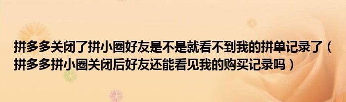 拼多多关闭了拼小圈好友是不是就看不到我的拼单记录了(拼多多拼小圈关闭后好友还能看见我的购买记录吗)