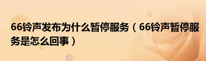 大家好,跳跳为你解答以上问题。66铃声发布为什么暂停服务,66铃声暂停服务是怎么回事这个问题很多人还不知道,现在让我们一起来看看吧!