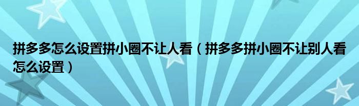 大家好,跳跳为你解答以上问题。拼多多怎么设置拼小圈不让人看,拼多多拼小圈不让别人看怎么设置这个问题很多人还不知道,现在让我们一起来看看吧!