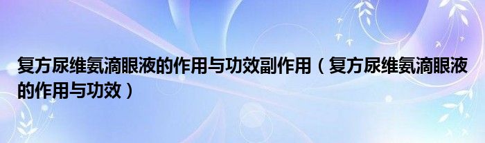 大家好,linda来为大家解答以上的问题。复方尿维氨滴眼液的作用与功效副作用,复方尿维氨滴眼液的作用与功效很多人还不知道,现在让我们一起来看看吧!