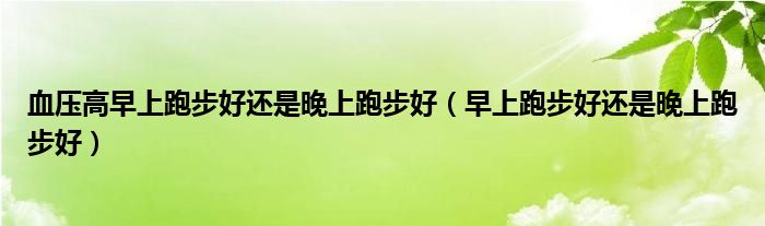 大家好,linda来为大家解答以上的问题。血压高早上跑步好还是晚上跑步好,早上跑步好还是晚上跑步好很多人还不知道,现在让我们一起来看看吧!