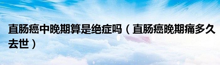 大家好,linda来为大家解答以上的问题。直肠癌中晚期算是绝症吗,直肠癌晚期痛多久去世很多人还不知道,现在让我们一起来看看吧!
