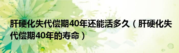1、失代偿期肝硬化40年能活多久不取决于多少年,主要看失代偿期肝硬化的程度,有什么样的并发症,几种并发症,也和肝硬化的病因,肝硬化是否得到控制有关系。