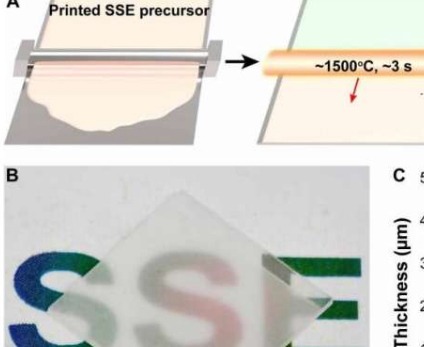 马里兰大学A. James Clark工程学院的胡良兵领导的研究小组最近开发了一种印刷和烧结各种SSE薄膜的新方法。这项名为“可打印的高性能固态电解质膜”的工作于2020年11月18日在《科学进展》上发表。该团队将该方法命名为“印刷和辐射加热”(PRH),该方法具有基于溶液的可印刷技术,然后进行快速烧结。