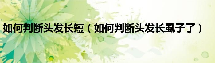 大家好,linda来为大家解答以上的问题。如何判断头发长短,如何判断头发长虱子了很多人还不知道,现在让我们一起来看看吧!