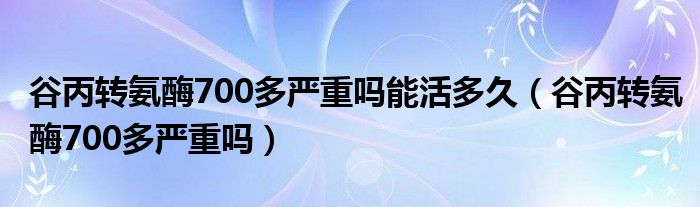 大家好,linda来为大家解答以上的问题。谷丙转氨酶700多严重吗能活多久,谷丙转氨酶700多严重吗很多人还不知道,现在让我们一起来看看吧!