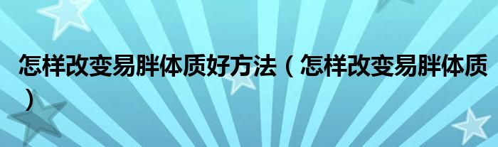 大家好,linda来为大家解答以上的问题。怎样改变易胖体质好方法,怎样改变易胖体质很多人还不知道,现在让我们一起来看看吧!