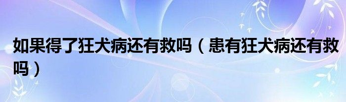 大家好,linda来为大家解答以上的问题。如果得了狂犬病还有救吗,患有狂犬病还有救吗很多人还不知道,现在让我们一起来看看吧!