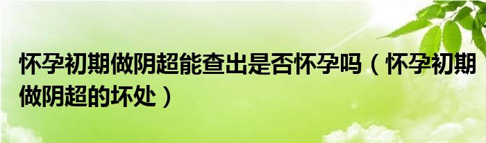 大家好,linda来为大家解答以上的问题。怀孕初期做阴超能查出是否怀孕吗,怀孕初期做阴超的坏处很多人还不知道,现在让我们一起来看看吧!