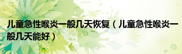 2、引起急性喉炎的病原体大多是病毒,不需要相应的治疗、抗病毒药物或抗生素,主要依靠自身的抵抗力。所以对于病毒感染,一般自然病程在一周左右,会被耐药性抑制,逐渐恢复。有些孩子的急性喉炎是由细菌感染引起的。早期给孩子用一些抗生素,比如头孢,会起到更好的作用,3-5天孩子就会好。急性喉炎是儿科的急重症,因为容易引起局部梗阻,导致患儿窒息。所以一旦发现急性喉炎,需要积极治疗,可以给孩子进行局部雾化吸入治疗,帮助孩子缓解局部炎症。如果孩子的喉炎是病毒感染引起的,自然病程在一周左右。孩子喉炎后可能出现咳嗽、咳痰,病程可能持续两周。如果是由细菌感染引起,并应用相应有效的抗感染治疗,总病程可能在3-5天明显好转,一般不超过2周。