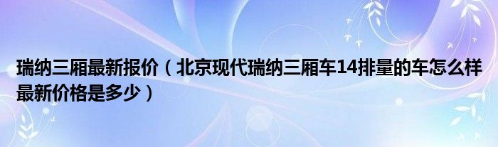 大家好,小常来为大家解答以下问题,对于瑞纳三厢最新报价,北京现代瑞纳三厢车14排量的车怎么样最新价格是多少很多人还不知道,今天让我们一起来看看吧!