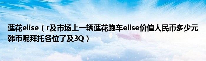 大家好,小常来为大家解答以下问题,对于莲花elise,r及市场上一辆莲花跑车elise价值人民币多少元韩币呢拜托各位了及3Q很多人还不知道,今天让我们一起来看看吧!