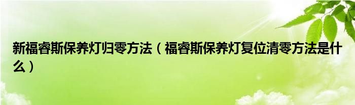 新福睿斯保养灯归零方法(福睿斯保养灯复位清零方法是什么)