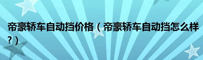 帝豪轿车自动挡价格(帝豪轿车自动挡怎么样?)