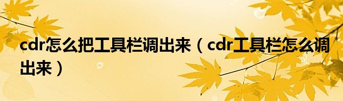 关于cdr怎么把工具栏调出来,cdr工具栏怎么调出来这个很多人还不知道,今天菲菲来为大家解答以上的问题,现在让我们一起来看看吧!