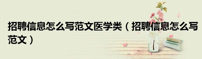 关于招聘信息怎么写范文医学类,招聘信息怎么写范文这个很多人还不知道,今天菲菲来为大家解答以上的问题,现在让我们一起来看看吧!