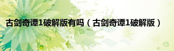 古剑奇谭1破解版有吗(古剑奇谭1破解版)