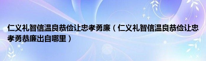 关于仁义礼智信温良恭俭让忠孝勇廉,仁义礼智信温良恭俭让忠孝勇恭廉出自哪里这个很多人还不知道,今天菲菲来为大家解答以上的问题,现在让我们一起来看看吧!