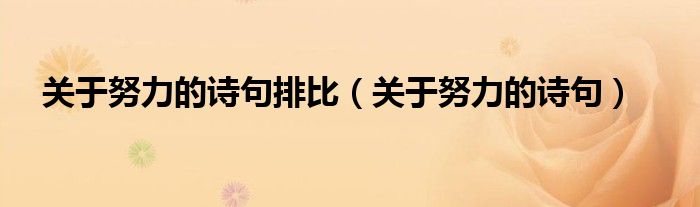 关于关于努力的诗句排比,关于努力的诗句这个很多人还不知道,今天菲菲来为大家解答以上的问题,现在让我们一起来看看吧!