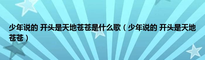关于少年说的 开头是天地苍苍是什么歌,少年说的 开头是天地苍苍这个很多人还不知道,今天菲菲来为大家解答以上的问题,现在让我们一起来看看吧!