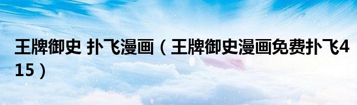 关于王牌御史 扑飞漫画,王牌御史漫画免费扑飞415这个很多人还不知道,今天菲菲来为大家解答以上的问题,现在让我们一起来看看吧!