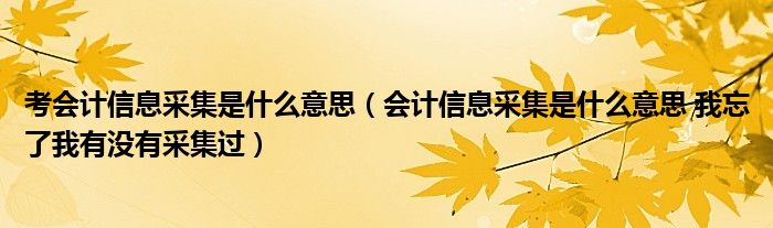 关于考会计信息采集是什么意思,会计信息采集是什么意思 我忘了我有没有采集过这个很多人还不知道,今天菲菲来为大家解答以上的问题,现在让我们一起来看看吧!