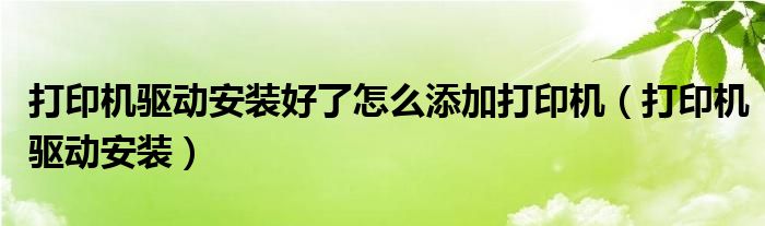 打印机驱动安装好了怎么添加打印机(打印机驱动安装)