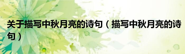 关于关于描写中秋月亮的诗句,描写中秋月亮的诗句这个很多人还不知道,今天菲菲来为大家解答以上的问题,现在让我们一起来看看吧!