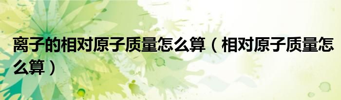 关于离子的相对原子质量怎么算,相对原子质量怎么算这个很多人还不知道,今天菲菲来为大家解答以上的问题,现在让我们一起来看看吧!