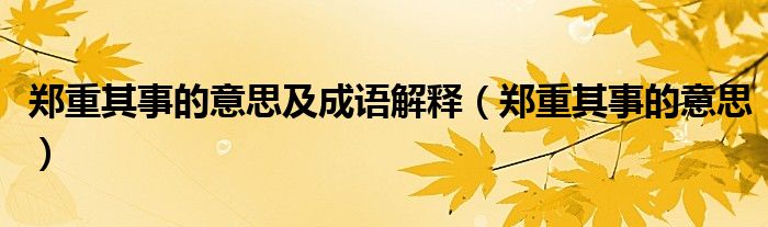 关于郑重其事的意思及成语解释,郑重其事的意思这个很多人还不知道,今天菲菲来为大家解答以上的问题,现在让我们一起来看看吧!