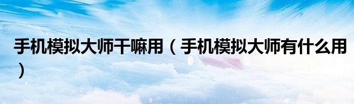 关于手机模拟大师干嘛用,手机模拟大师有什么用这个很多人还不知道,今天菲菲来为大家解答以上的问题,现在让我们一起来看看吧!