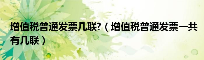 增值税普通发票几联?(增值税普通发票一共有几联)