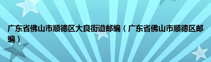 广东省佛山市顺德区大良街道邮编(广东省佛山市顺德区邮编)