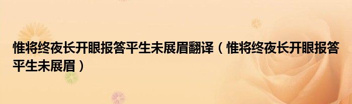 关于惟将终夜长开眼报答平生未展眉翻译,惟将终夜长开眼报答平生未展眉这个很多人还不知道,今天菲菲来为大家解答以上的问题,现在让我们一起来看看吧!