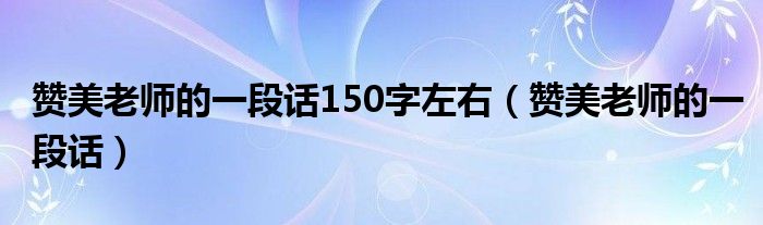 关于赞美老师的一段话150字左右,赞美老师的一段话这个很多人还不知道,今天菲菲来为大家解答以上的问题,现在让我们一起来看看吧!