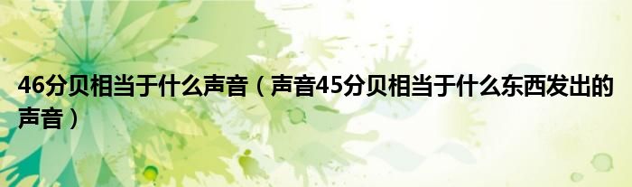 关于46分贝相当于什么声音,声音45分贝相当于什么东西发出的声音这个很多人还不知道,今天菲菲来为大家解答以上的问题,现在让我们一起来看看吧!