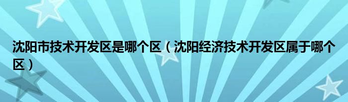 沈阳市技术开发区是哪个区(沈阳经济技术开发区属于哪个区)
